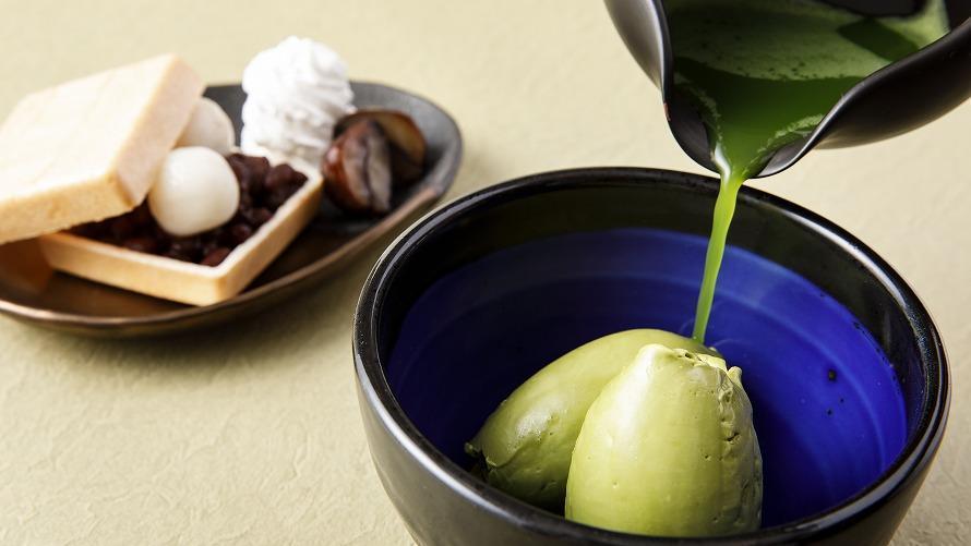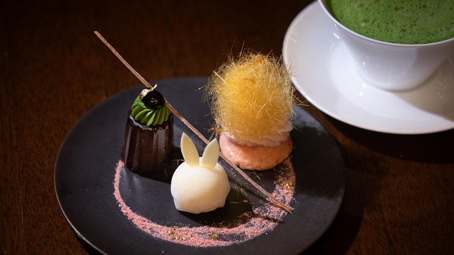 ラウンジ 光明のコンセプト「ジャパニーズモダン」にヒントを得て、目も舌も喜ぶようなスイーツをご用意いたします。