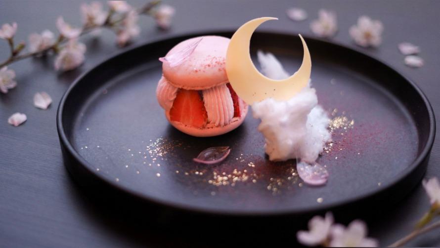 春のお月見をイメージしたスイーツと、さくら紅茶のセットをお楽しみいただけます。