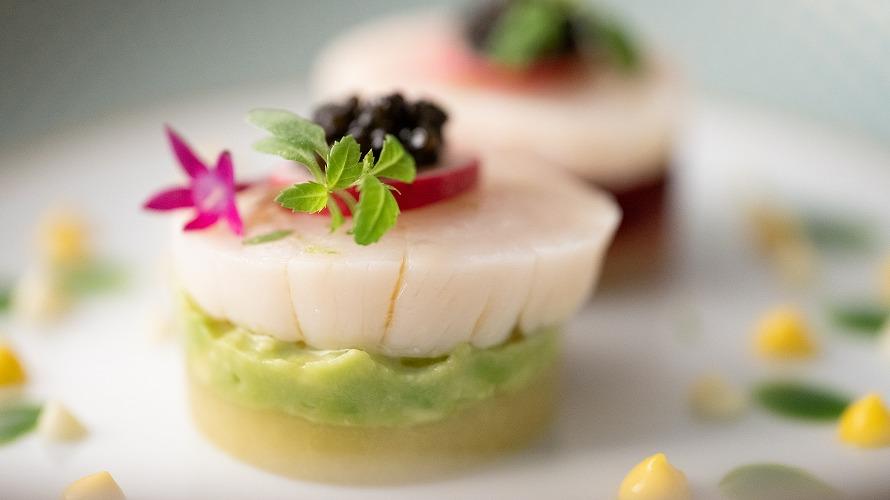 彩り豊かな季節の冷前菜や、魚料理か肉料理をお選びいただけるメインディッシュなど。