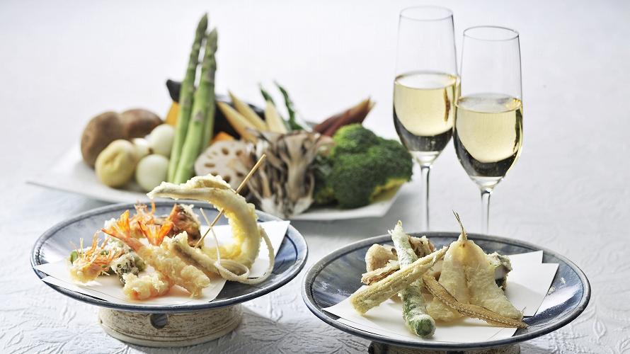 山の幸と海の幸を味わえる天婦羅コース。