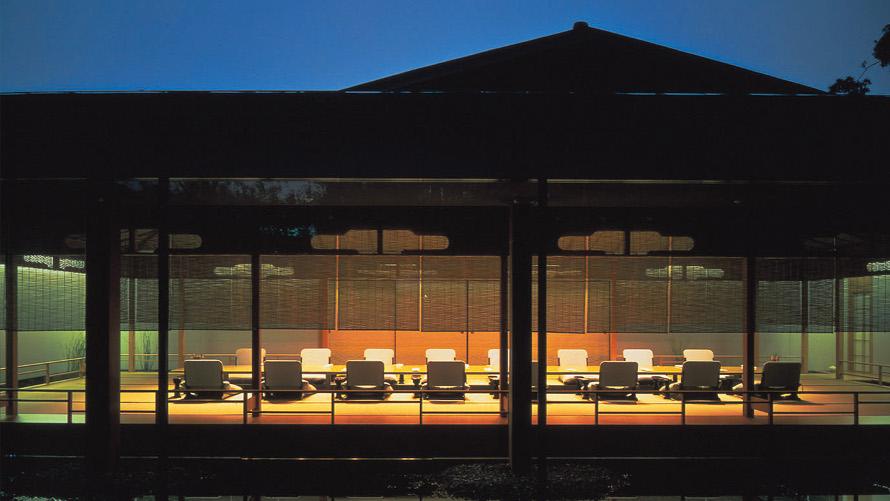 近代建築史における巨匠 村野藤吾が創る和空間。職人が仕上げる懐石料理で山海の幸を味わう。