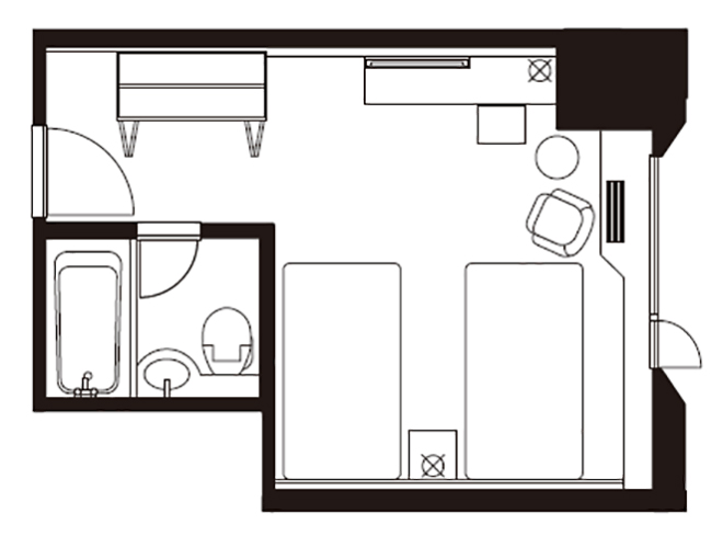 10・11Fの高層階に位置するツインルーム。