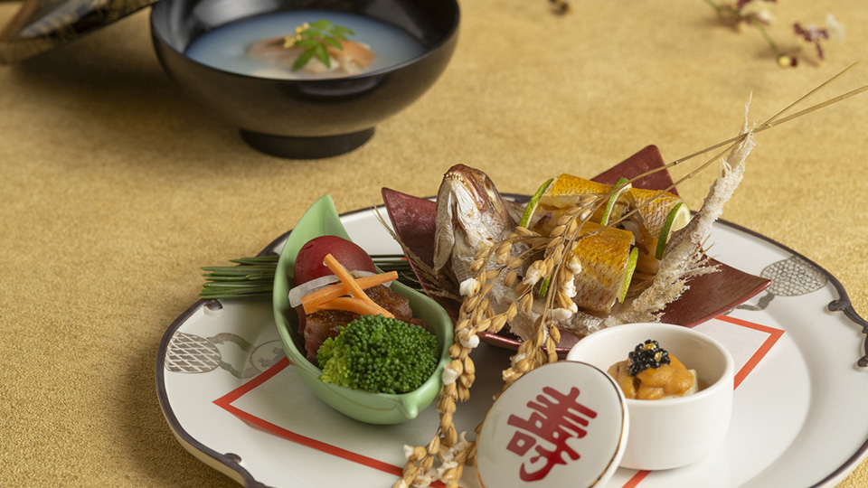 縁起の良い食材やこだわりの素材を厳選しシェフが丹精を込めて仕上げた祝宴にふさわしい華やかな料理をご用意。