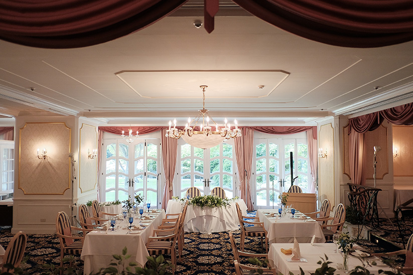 チャペルと同じフロアにある「フランス料理 ル・トリアノン」を披露宴会場に選んだこともこだわりの1つです。移動の簡便さのみならず、素敵な内装や美味しいお料理もゲストから好評でした。