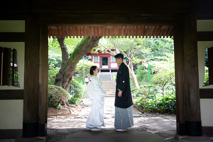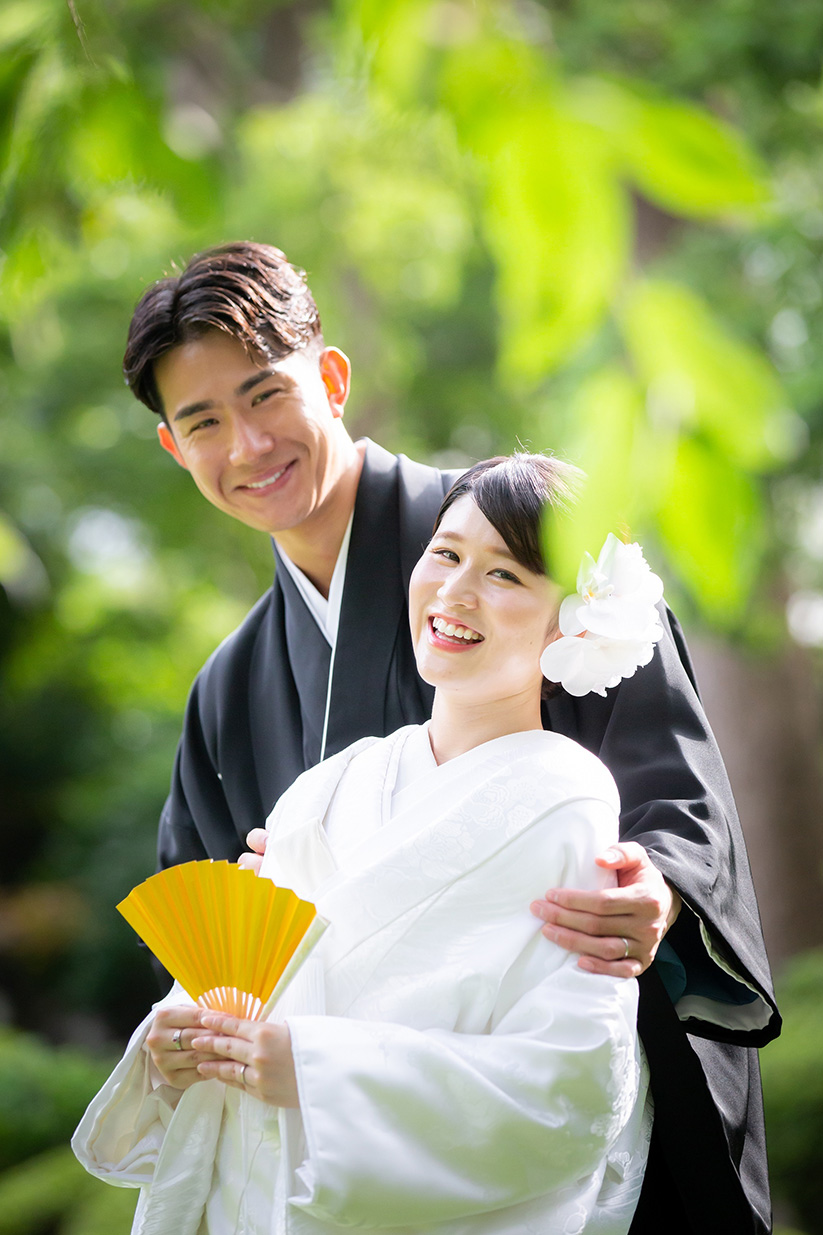 挙式で和装を着るか迷っていましたが、1日かけて和装での前撮り撮影を思う存分できたので十分満足できました。夏の撮影は、新緑が映えて白無垢がひときわ綺麗に写りました!