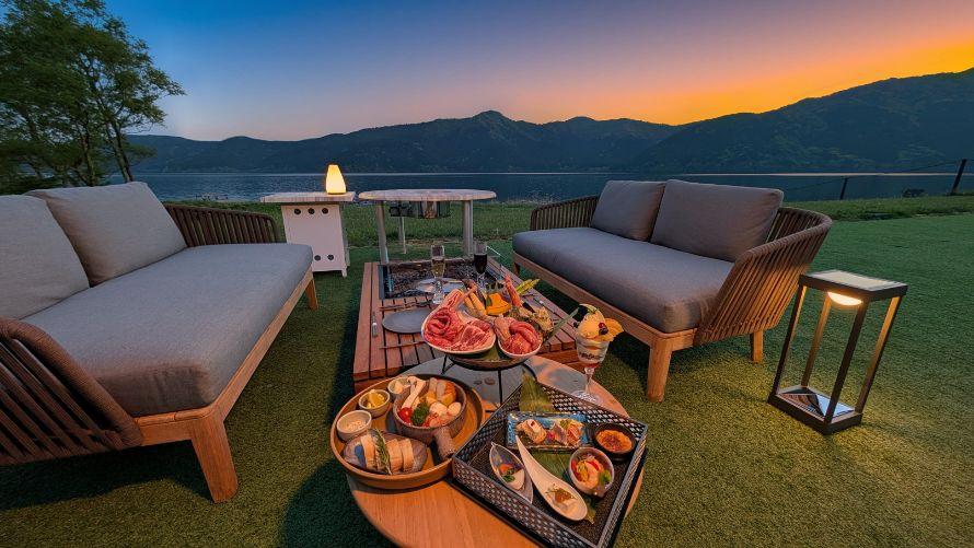 芦ノ湖の湖畔に囲まれて非日常体験を