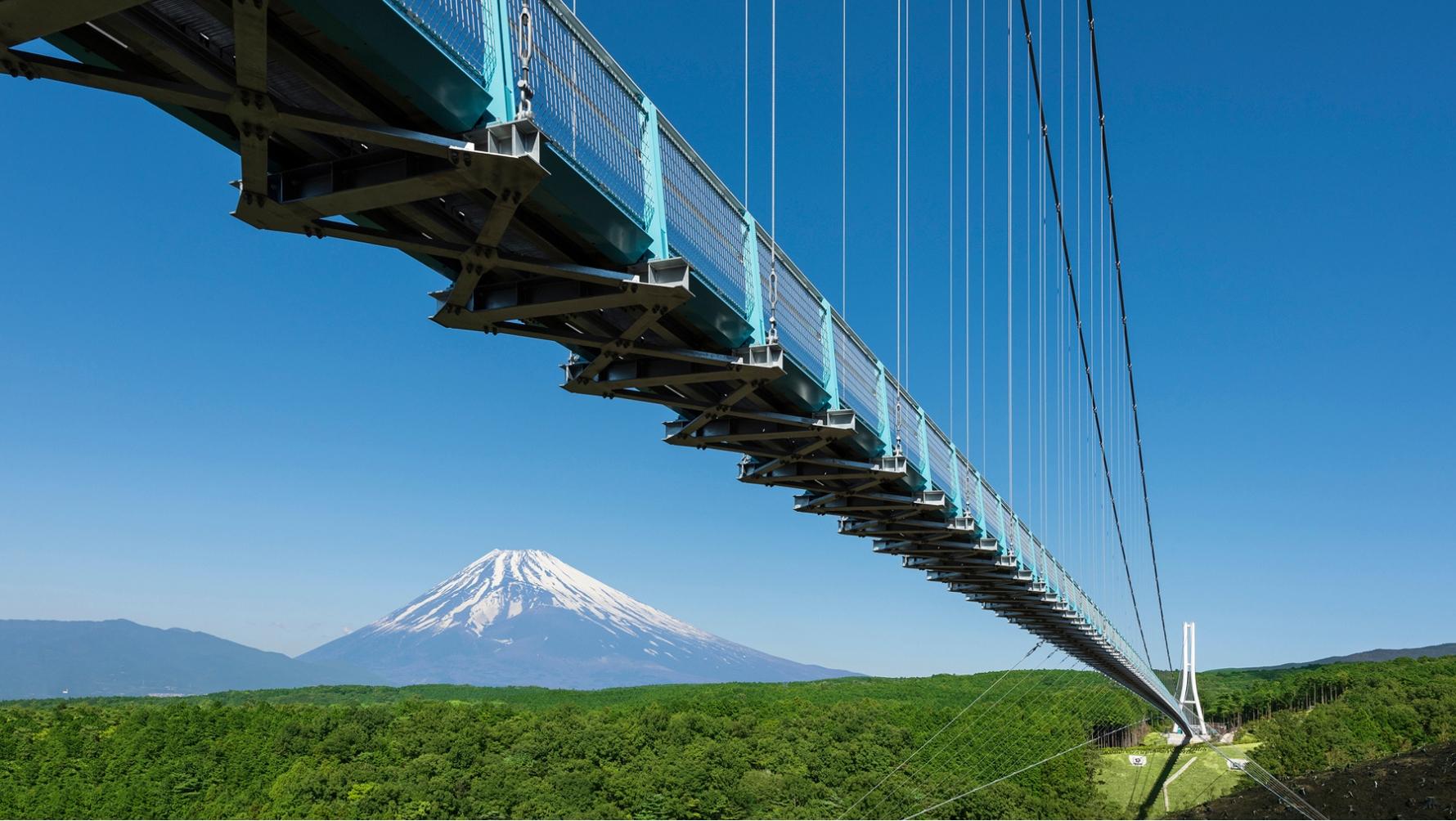 全長400m、日本一長い歩行者専用の吊橋。富士山や駿河湾、伊豆の山並みなど橋の上から一望できる絶景をお楽しみください。