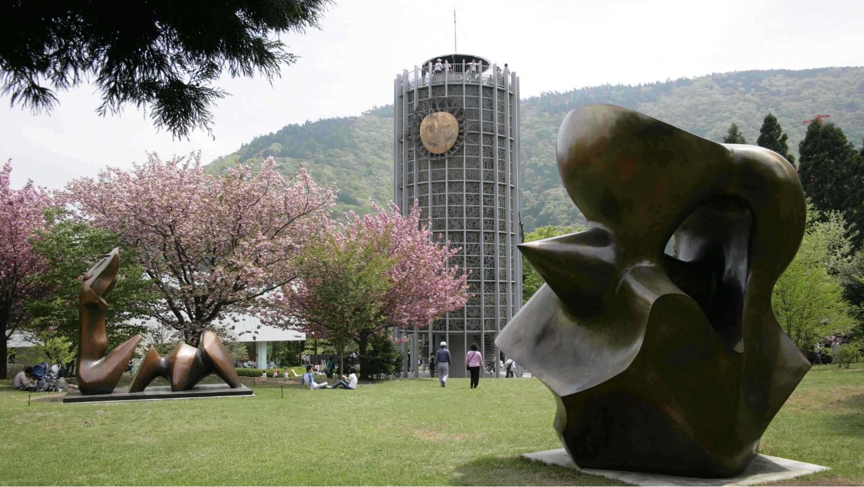 国内で はじめての野外美術館(オープンエアーミュージアム)です。箱根の山々が望める7万㎡の緑豊かな庭園に、 近・現代を代表する彫刻家の名作約120点が常設展示されています。お気に入りの作品をじっくり眺めたり散策気 分でのんびり歩いたり、思い思いに芸術とふれあうことができます。また、世界有数のコレクション300点余りを順 次公開しているピカソ館をはじめ、5つの室内展示場や天然温泉の足湯もあり、心豊かな憩いの ひとときを過ごすことができます。