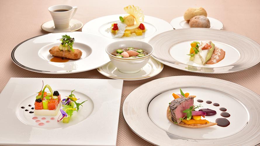 館内3つのレストラン(ブッフェ・フレンチ・和食)または宴会場(洋食コース料理)からご希望に応じたお食事会場にて、季節に合わせた食事をご堪能ください。