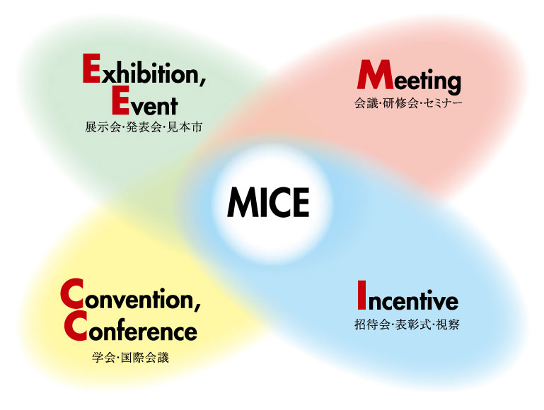 MICEとは、「Meeting」、「Incentive」、「Convention」、「Exhibition」の4つのビジネスアクションの頭文字をとった造語。