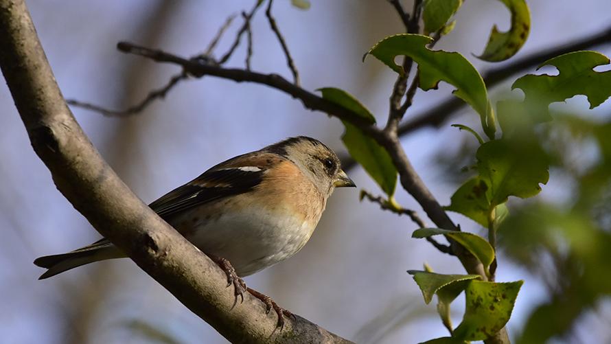 アトリ【冬】冬になると、群れで樹上を移動したり、開けた草地で他の鳥に混ざってエサを探している姿を見かけます。ギュイーンと絞り出すようになくさえずりはお世辞にも美しいとは言えませんが、魚のような尾っぽはかわいらしいです。