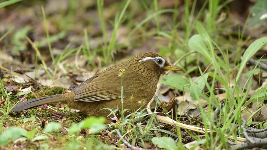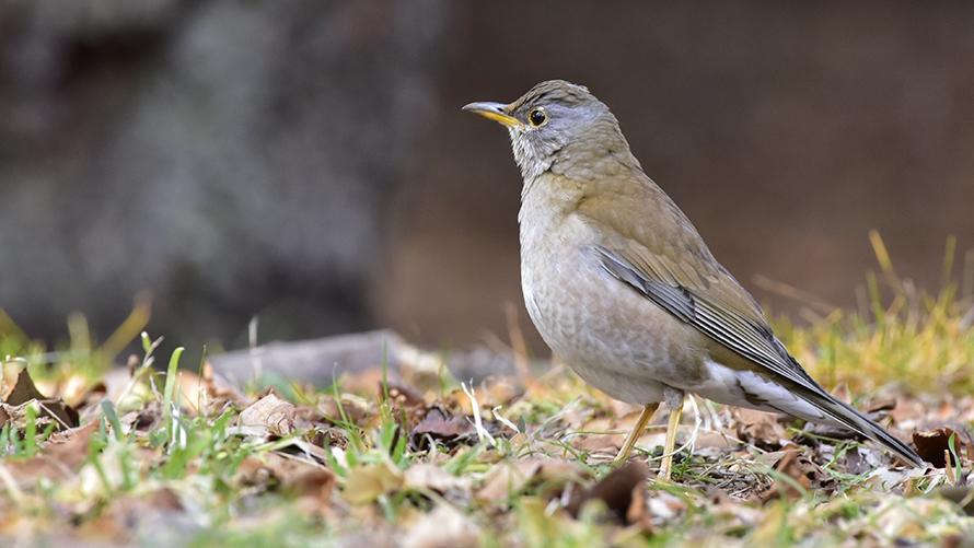 シロハラ【冬】:地面を含めた低い位置にいることが多い鳥で、白っぽいお腹が特徴です。単独で茂みの中でエサを探していて、たまに茂みから出てきてくれます。