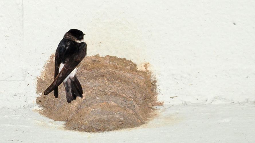 イワツバメ【夏】:ツバメなのにスワローテイル(燕尾)がないツバメです。腰の部分の白い帯でも普通のツバメと見分けることができます。