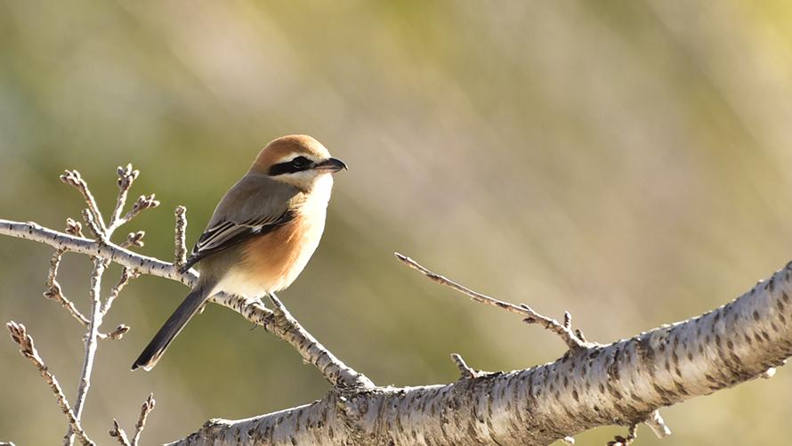 モズ【留】:アイシャドウ(過眼線)がイケメンです。メスはこれが少し薄くなります。比較的開けた場所に出てきてくれるので見かけやすいです。漢字で「百舌」と書くモズは様々な鳥の鳴き声やさえずりを真似ることが由来です。キチキチ・ジュンジュンと鳴いたり、秋は甲高くキーィキーィと鳴きます。捕らえたカエルやトカゲを木の枝に串刺す早贄(はやにえ)という習性が知られています。