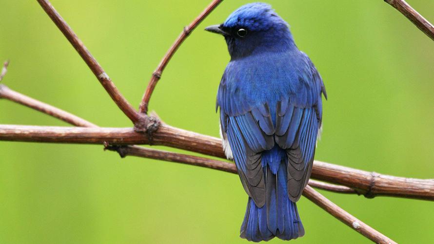 オオルリ【夏】:オスは美しい「青い鳥」で、見かけるとテンションが上がります。お腹は白く、メスは地味な色をしています。高いきれいな声で複雑なさえずりをします。