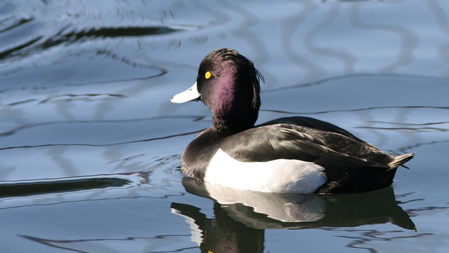 キンクロハジロ【冬】金色の目、黒い体、羽が白いからキンクロハジロ。カモの仲間のネーミングは覚えやすいものが多いです。