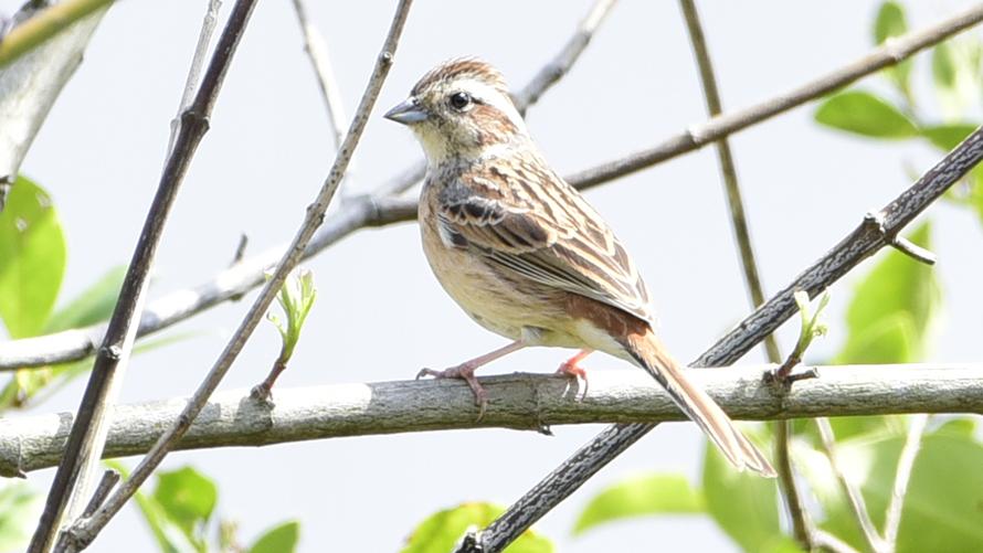ホオジロ【留】:褐色の体に顔は白黒の模様があります。(メスは白と褐色の模様)チチッチチッと短く鳴きます。シジュウカラの頬が白く大きいことから、よくホオジロと間違えていることが多いようです。
