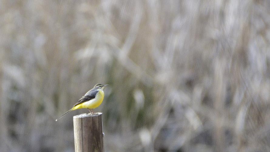 キセキレイ【留】:セキレイの中では一番見かけない、お腹が黄色いきれいな鳥です。小川やせせらぎ付近で、尾っぽを上下にフリフリしているところを見ることができます。さえずりは甲高い声でキシキシキシ、チョイチョイチョイ。