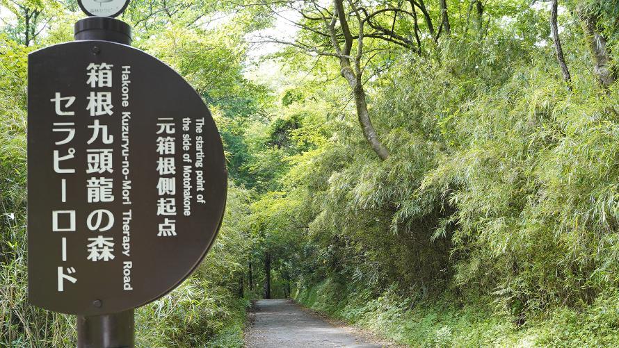 九頭龍の森入口。ここから遊歩道を約20分歩いて箱根九頭龍の森へ。