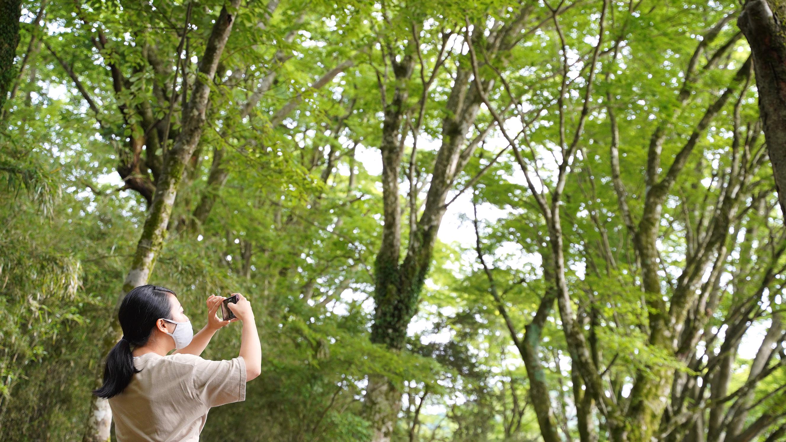 まだ誰もいない早朝の箱根九頭龍の森では、鳥たちのさえずりに耳を傾け、自然の息吹を感じましょう。