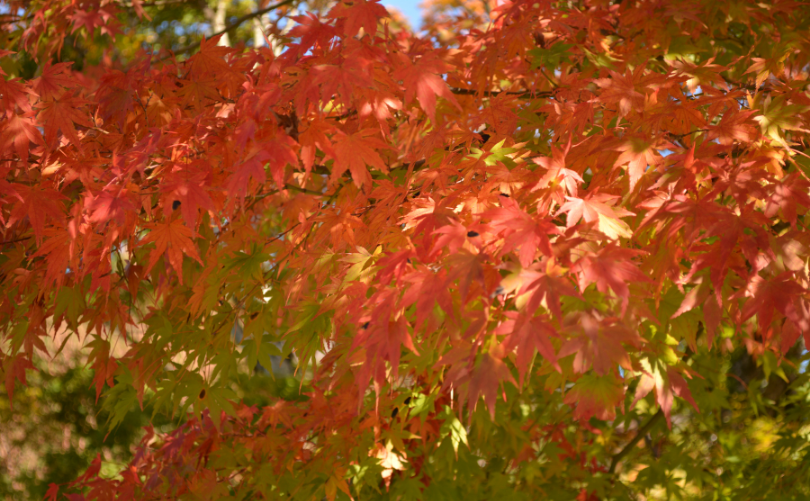 オオモミジ、オオイタヤメイゲツ、コミネカエデ、シラキ、ヤマザクラの紅葉。