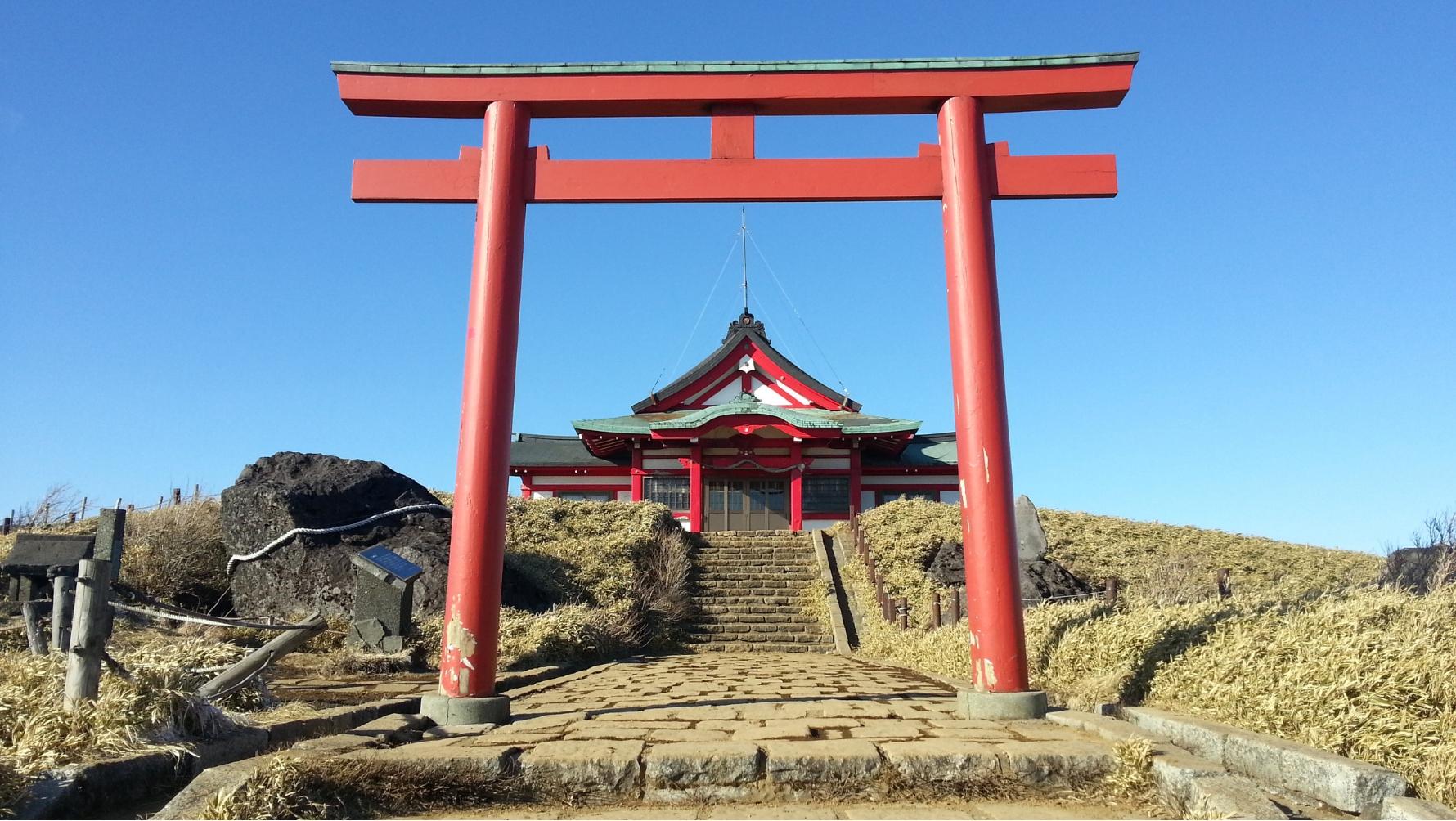 箱根駒ケ岳山頂の元宮は、箱根神社の奥宮 として1964 年( 昭和39 年) 再建され以来、祭祀が厳修され、四季を通して登拝者で賑っています。周辺には白馬に乗って神様が降臨したと伝えられる馬降石(ばこうせき)や馬乗石(ばじょうせき)など、白馬信仰の跡を物語る史跡も残されています。ご利益は、開運厄除け」「心願成就」「交通安全」「恋愛成就」の神さまとして信仰されています。