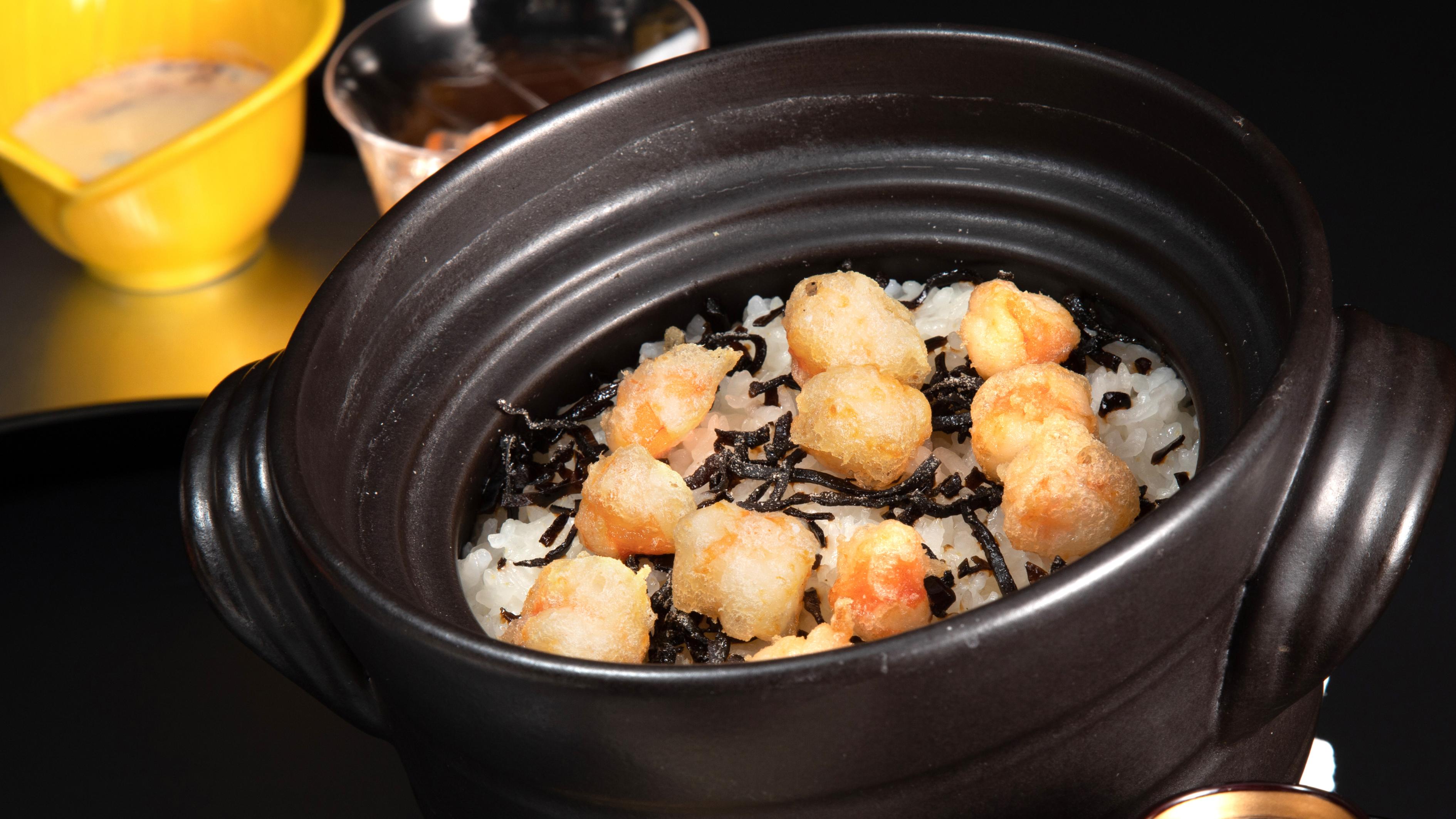 海老バラ揚げ釜炊き 塩昆布