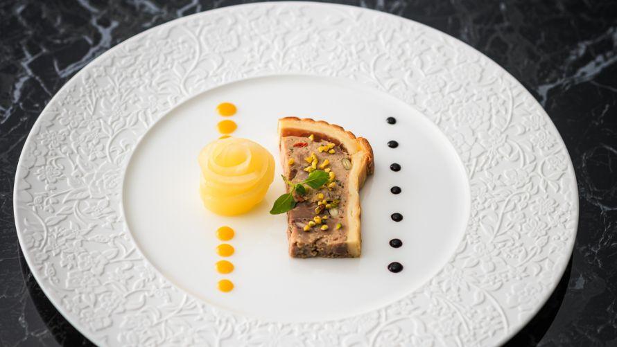「箱根山麓豚と鴨のパテ・アンクルート 粒マスタードとバルサミコソース」