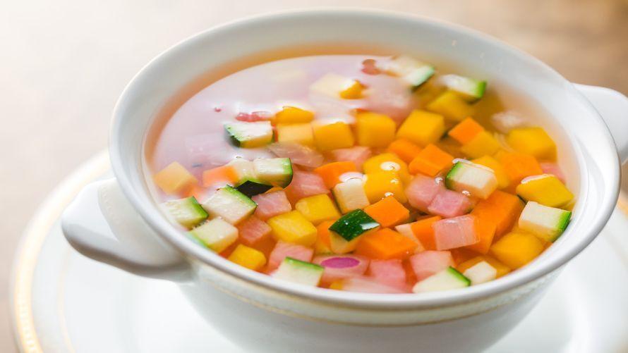 「彩り野菜と白いんげん豆のブイヨンスープ」