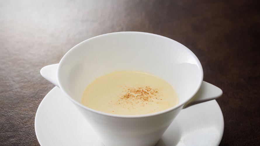 「蕪とフォアグラのクリームスープ キャトルエピスの香りで」