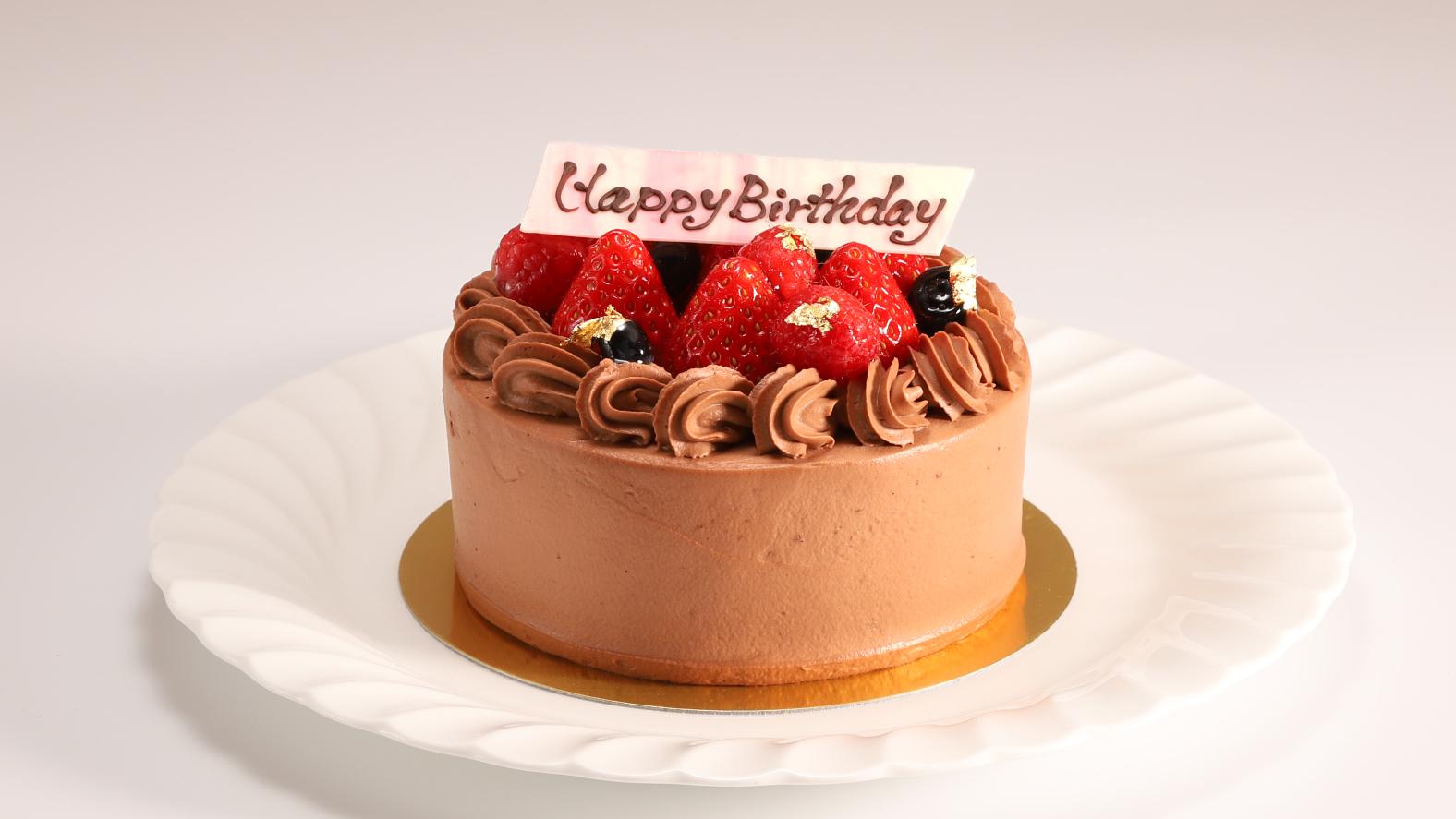 濃厚なチョコレートクリームと彩り豊かな季節のフルーツでデコレーションしたケーキです。
