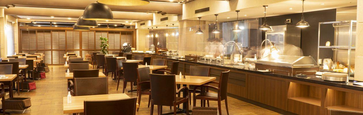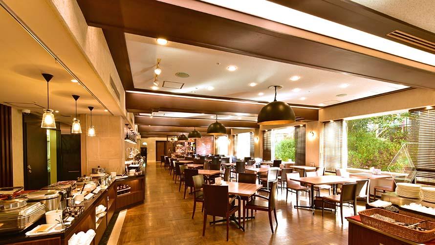 西洋料理・日本料理・中国料理など季節の地元食材を活かした多彩な種類のメニューを取り揃えているブッフェレストランです。シェフがライブキッチンでカッティングするローストビーフ、季節のパスタやピザ、デザートなどをご用意しております。