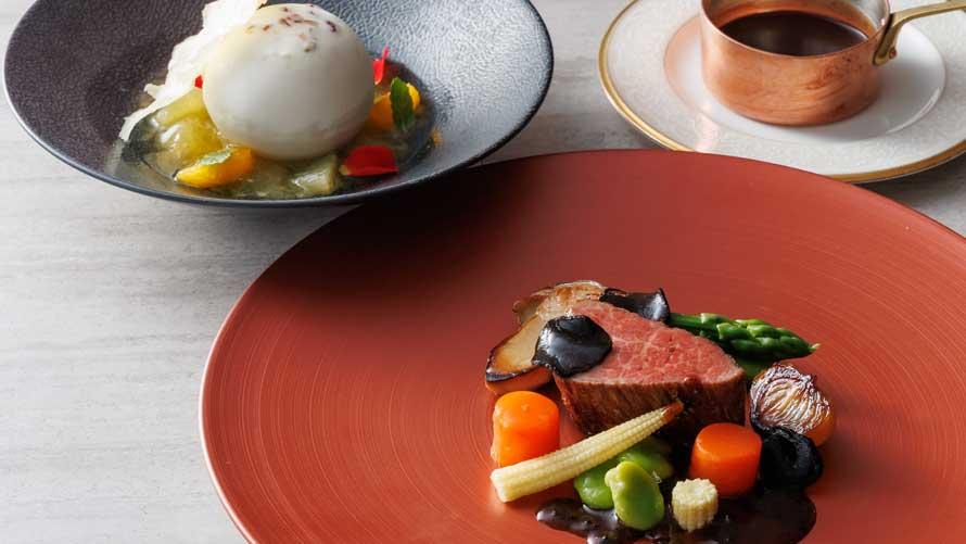トラディショナルなフレンチに福井県の名産を取り入れた特別コース。肉料理には若狭牛のフィレを、デザートのヌガーグラッセには福井の梅、羽二重餅、日本なつめを使用。クラシックの流れの中に、静かに広がる福井の風味をお愉しみください。