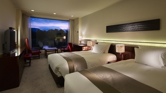 庭続きに連なるガーデンツインルームは、最大3名さままで滞在可能。ご家族やご友人同士のご旅行に最適な寛ぎ空間です。
