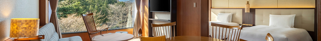 どのお部屋からも正面に浅間山を望み、絵画のような軽井沢の四季をお楽しみいただけます。お部屋を入口で繋げたコネクティングルームとしてもご利用が可能です。