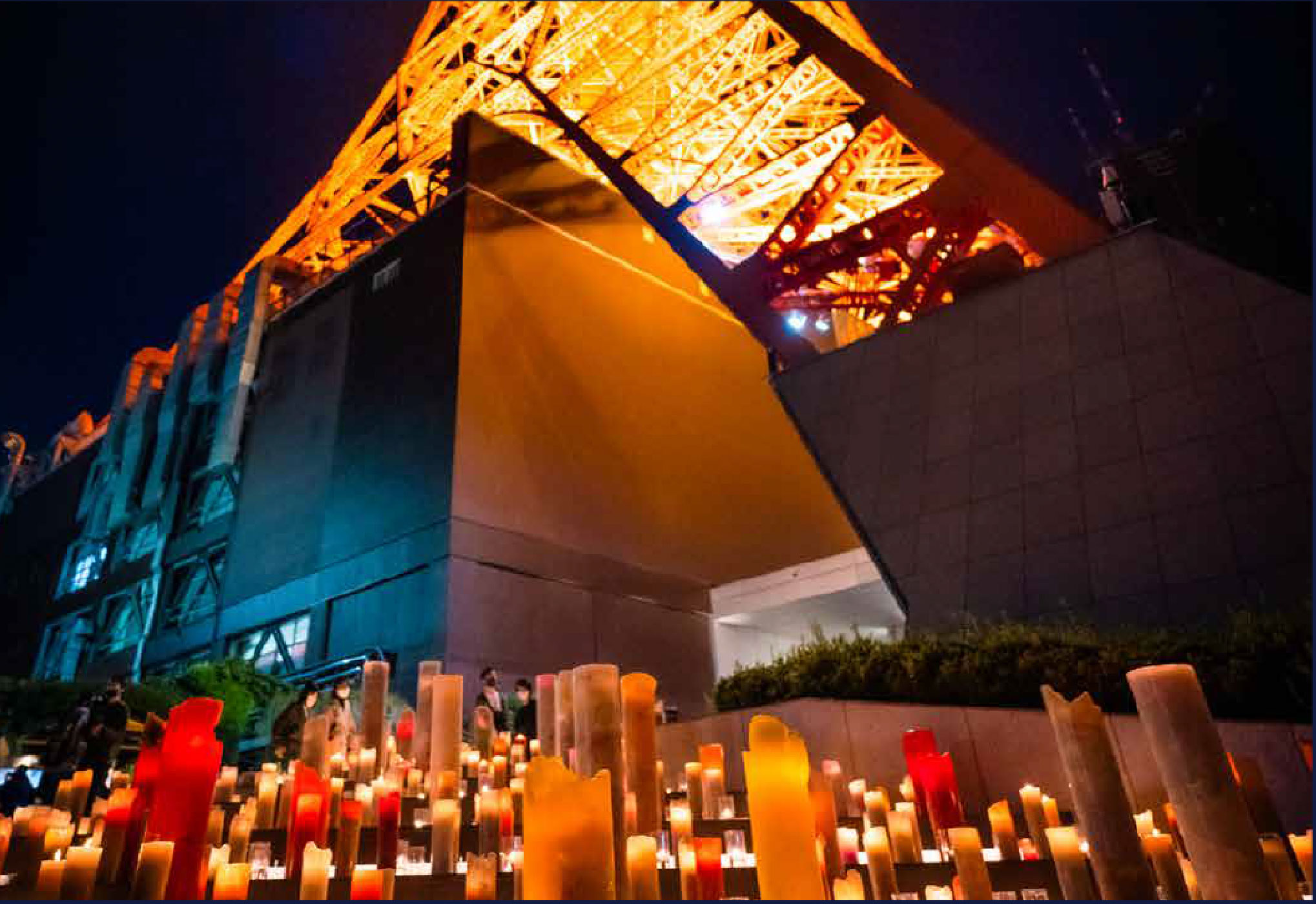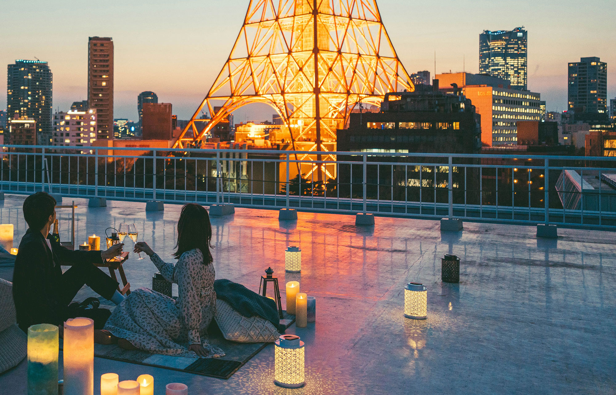 愛宕山での月見が特に喜ばれたのは、その眺望のよさで江戸府内で一番高い山で、海抜26メートル、高層ビルがない時代には、眼下には錦絵のように江戸の町と海の絶景が広がっていたとされています。花見、月見、雪見を洒落込み、品川沖や武家屋敷が連なる江戸の家並みを眺望できる景観も自慢の地でした。江戸に町ができるまではその下は「芝」という地名が表すような低湿地が広がっていたわけですが、現代はここ芝公園に位置する東京プリンスホテル屋上からも、いにしえから続く絶景が広がっています。