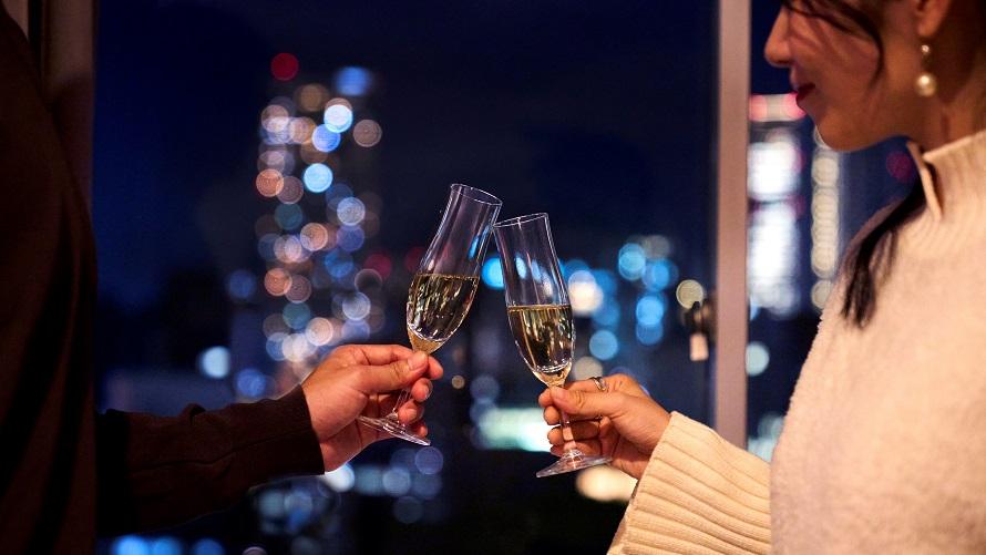 シャンパンを片手に昭和の時代から変わらぬ東京の美しい街並みを眺めながら