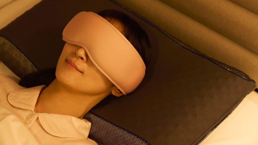 ドクターエアME「ホット&ウェーブアイマスク」。おやすみ前のリラックスタイムに目元を優しくケア。※お持ち帰り不可×