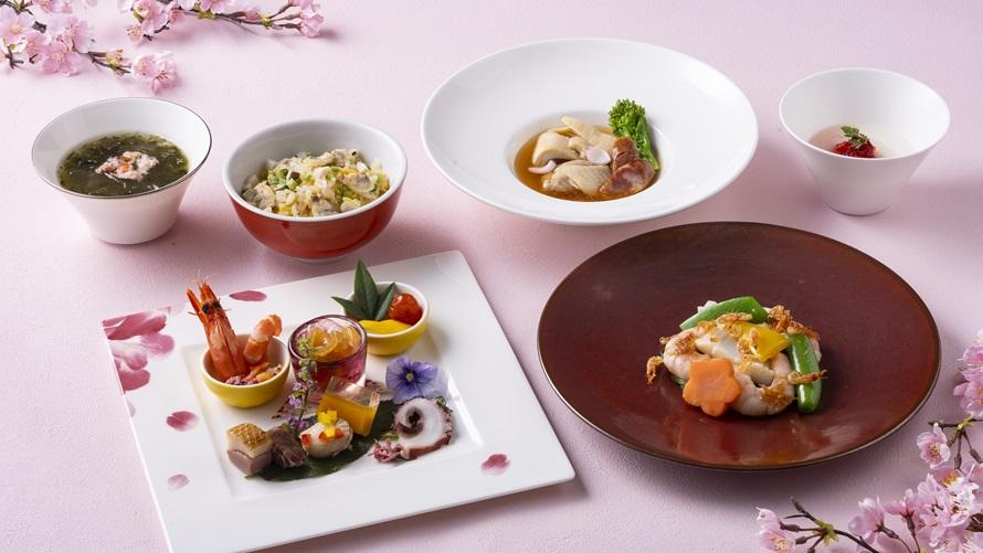 桜咲く春をイメージした淡い色で表現した、ランチコースをご用意。