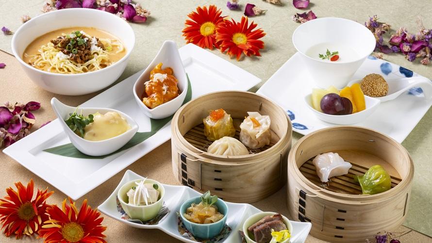 小籠包や蒸し餃子、焼売など5種類の点心や、選べるつゆそばなど多彩なメニューを一度にたくさんお楽しみいただけます。中国茶などのカフェフリーフロー付きなので、大切な方やご友人との語らいの場に最適なメニューです。