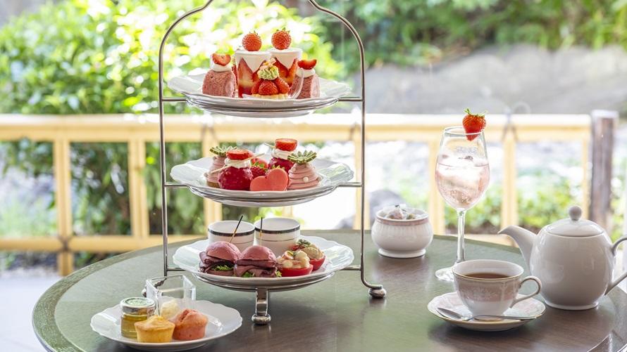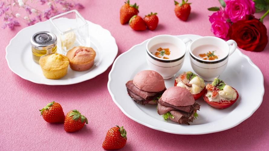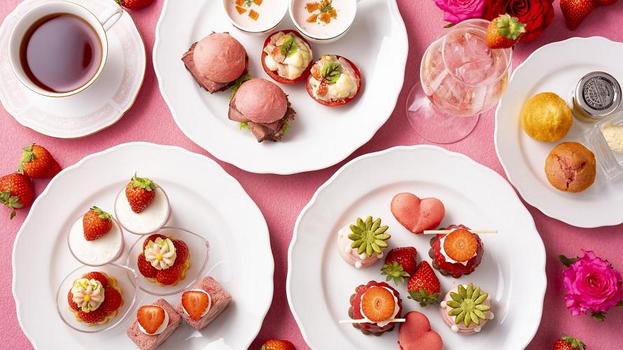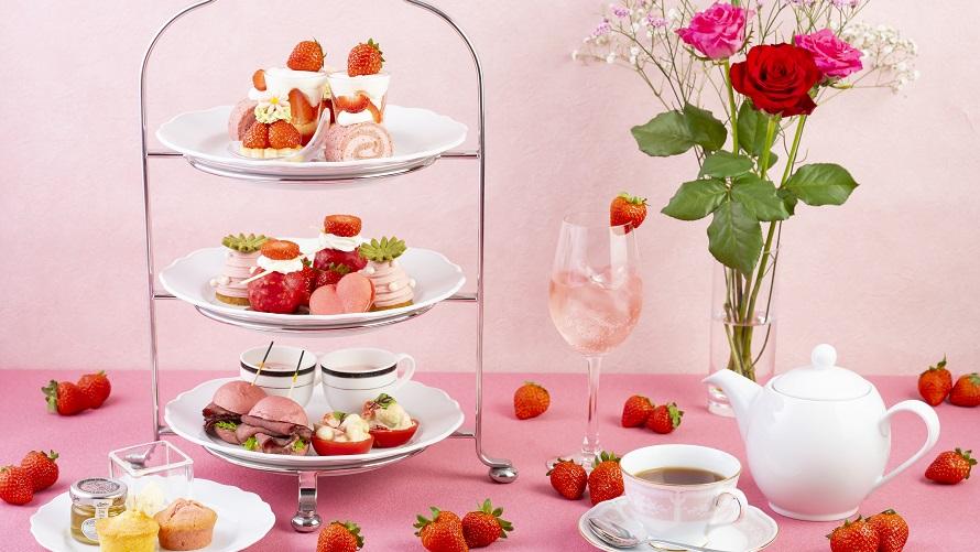 「あまおう」をふんだんに使用したいちごピンクのアフタヌーンティー。
