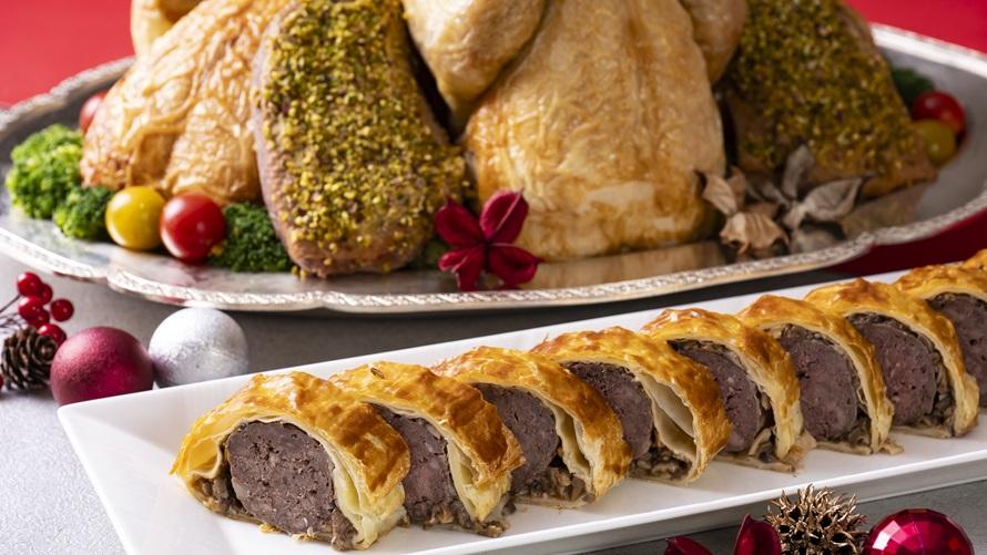 シグネチャーメニューの国産牛のローストビーフや、国産牛のビーフシチュー、国産牛とキノコのパイ包み焼き、鶏のオーブン焼きなどクリスマスディナーをお楽しみいただける華やかなお料理の品々に舌鼓。