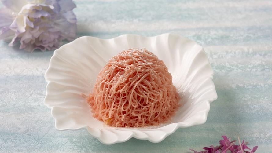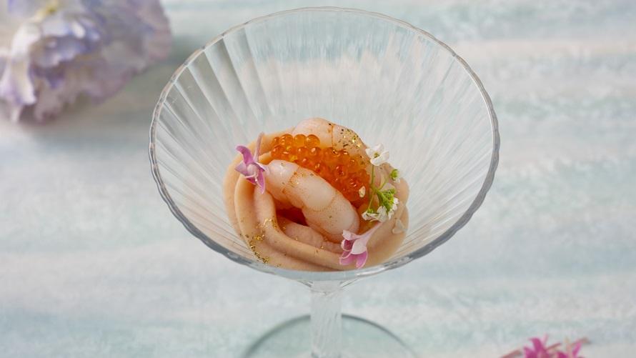 劇中の象徴的なアイテムをイメージした前菜やスイーツ、お客さまの前で絞るモンブランなど、