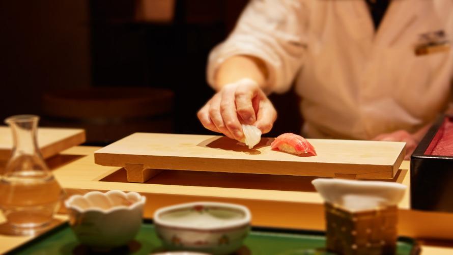 「寿司処 五徳」のカウンターで板前が提供するかつての東京プリンスホテルのクオリティをお楽しみください。