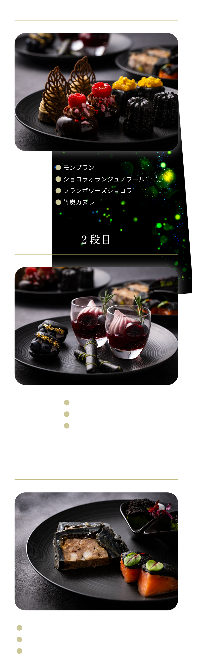 - 当社のレストラン、宴会場等における食物アレルギー対応につきましては、食品表示法により製造会社等(当社の食材仕入先)に表示義務のある特定原材料7品目(えび・かに・小麦・そば・卵・乳・落花生)のみとさせていただきます。特定原材料7品目の対応をご希望のお客さまは事前にお申し出ください。