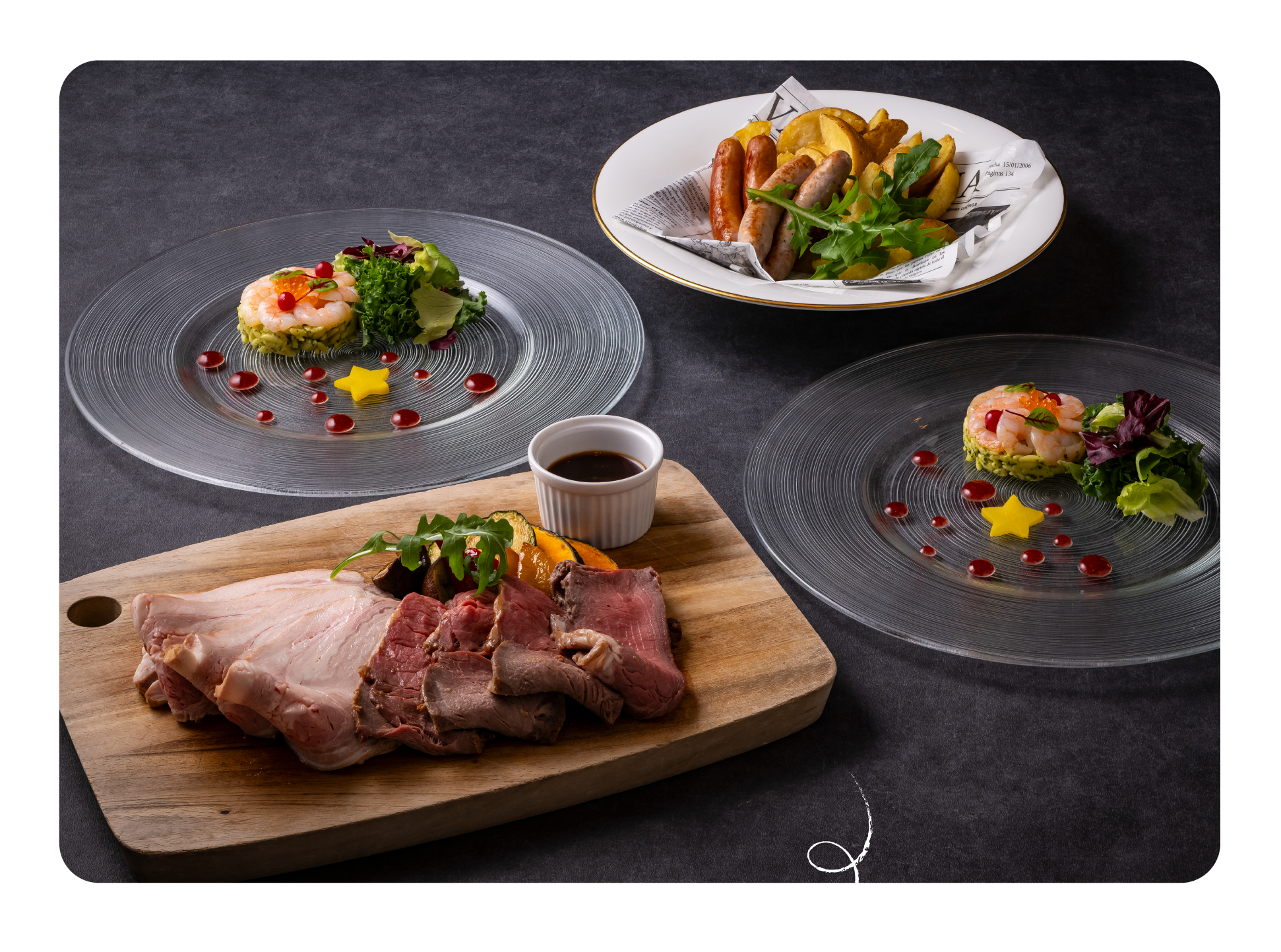 ディナー 5:30P.M.- 9:30P.M.(L.O. 9:00P.M.)