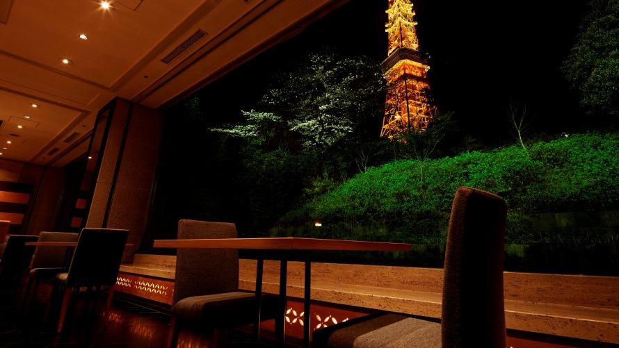 夜は窓側席から東京タワーのライトアップした輝きを眺めながらお寛ぎいただけます。