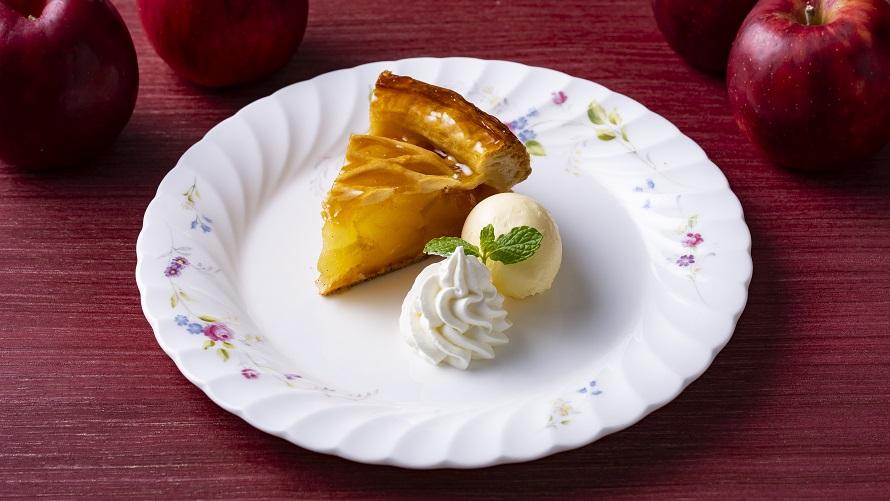 サクサクのパイ生地の中に、フレッシュなりんごを水を一切使わずに素材のもつ水分だけで火入れしてたっぷりと挟み込んだボリュームのあるアップルパイです。ほんのり温かいアップルパイと、冷たいバニラアイスを一緒にお召しあがりください。