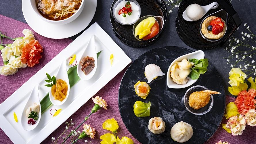 小籠包や蒸し餃子、焼売など5種類の点心や、選べるつゆそばなど多彩なメニューを一度にたくさんお楽しみいただけます。中国茶などのカフェフリーフロー付きなので、大切な方やご友人との語らいの場に最適なメニューです。