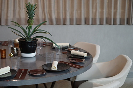 フランス出身。リッツカールトンの「Atelier」など有名レストランで料理長を務めた実績を持つ。「料理界のアカデミー賞」と呼ばれるジェームズ・ビアード財団賞ベストシェフを受賞(2009)。2019年、2020年と2年連続でミシュラン2つ星、ニューヨークタイムズでは3つ星を獲得。卓越した技術と完璧なサービスは、高く評価されています。